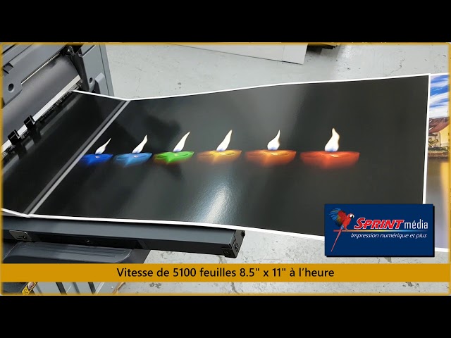 Cette presse numérique couleur permet de produire 70 copies couleur à la minute. Elle réalise aussi des impressions numériques recto verso sur du carton